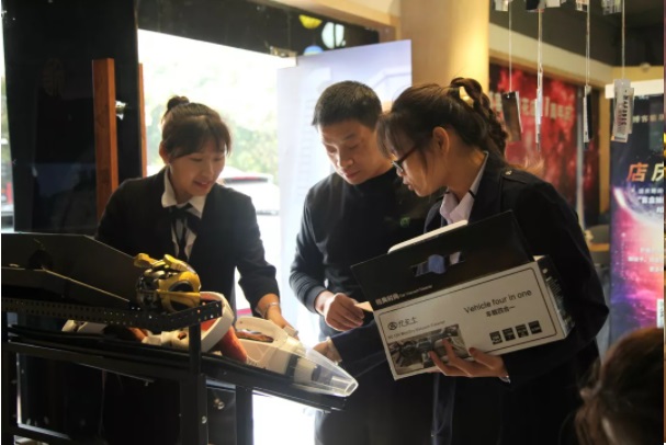 經過的路人都忍不住駐足觀望,因為車輛排滿了門店周圍,28日下午預約車輛排到了23號,技師們基本出不了工作間,除了汽車精洗,還有漆面保護膜、漆面鍍晶、防護窗膜施工等等,其他兩個門店的銷售顧問,美容技師們都來到紫荊花店進行支援。